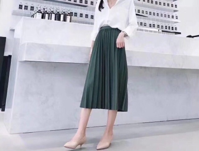 Giới thiệu Chân váy midi xếp ly trơn 1 màu (hàng có sẵn)