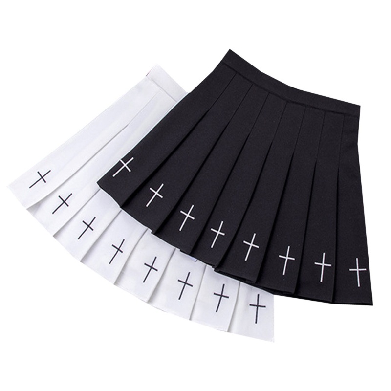 Giới thiệu Chân Váy Mini Lưng Cao Thêu Chữ Thập Phong Cách Gothic Punk Cho Nữ