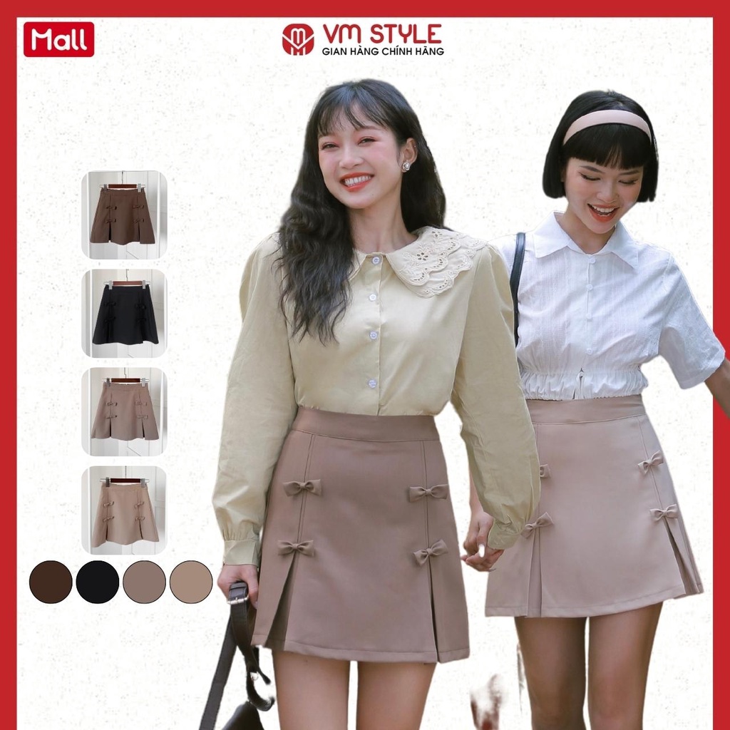 Giới thiệu Chân váy ngắn nữ VMSTYLE họa tiết nơ bên xếp ly tiểu thư 07222 - CVN00098