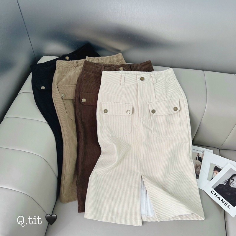 Giới thiệu Chân Váy Nhung Tăm Chữ A Xẻ Trước Khuy Sắt Siêu Xinh Mã 01
