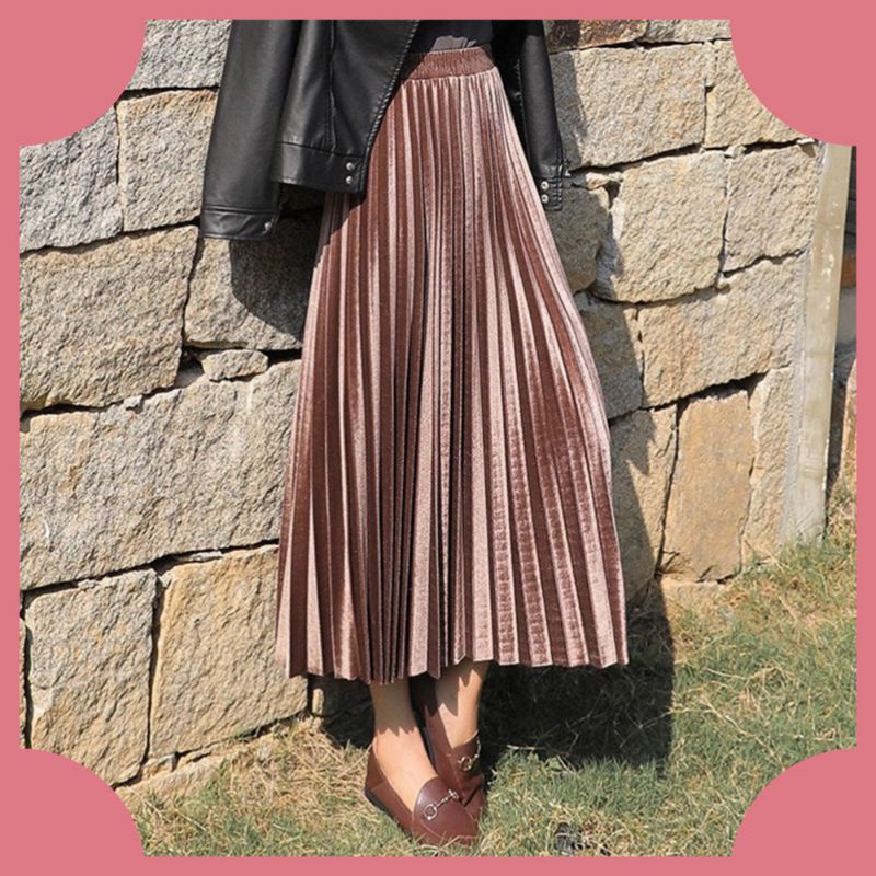 Chân váy nhung xếp ly dáng dài 2Hand - Hàng đảm bảo Mới 99% và Chất lượng