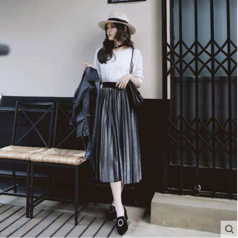 Thời Trang Nữ > Chân váy > chân váy nhung xếp ly - mẫu giao ngẫu nhiên