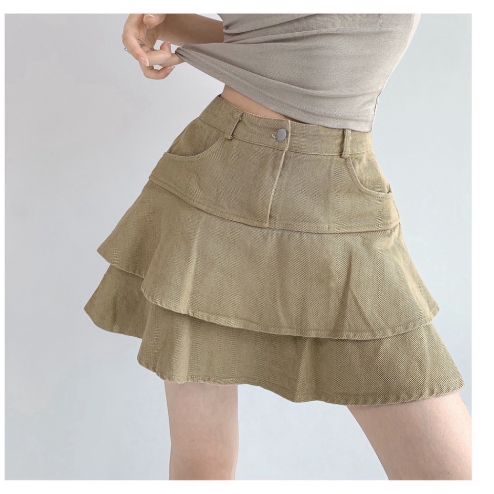 Chân váy nữ, chân váy jeans tầng màu xanh không dây phụ kiện size SML SKUCV-17B