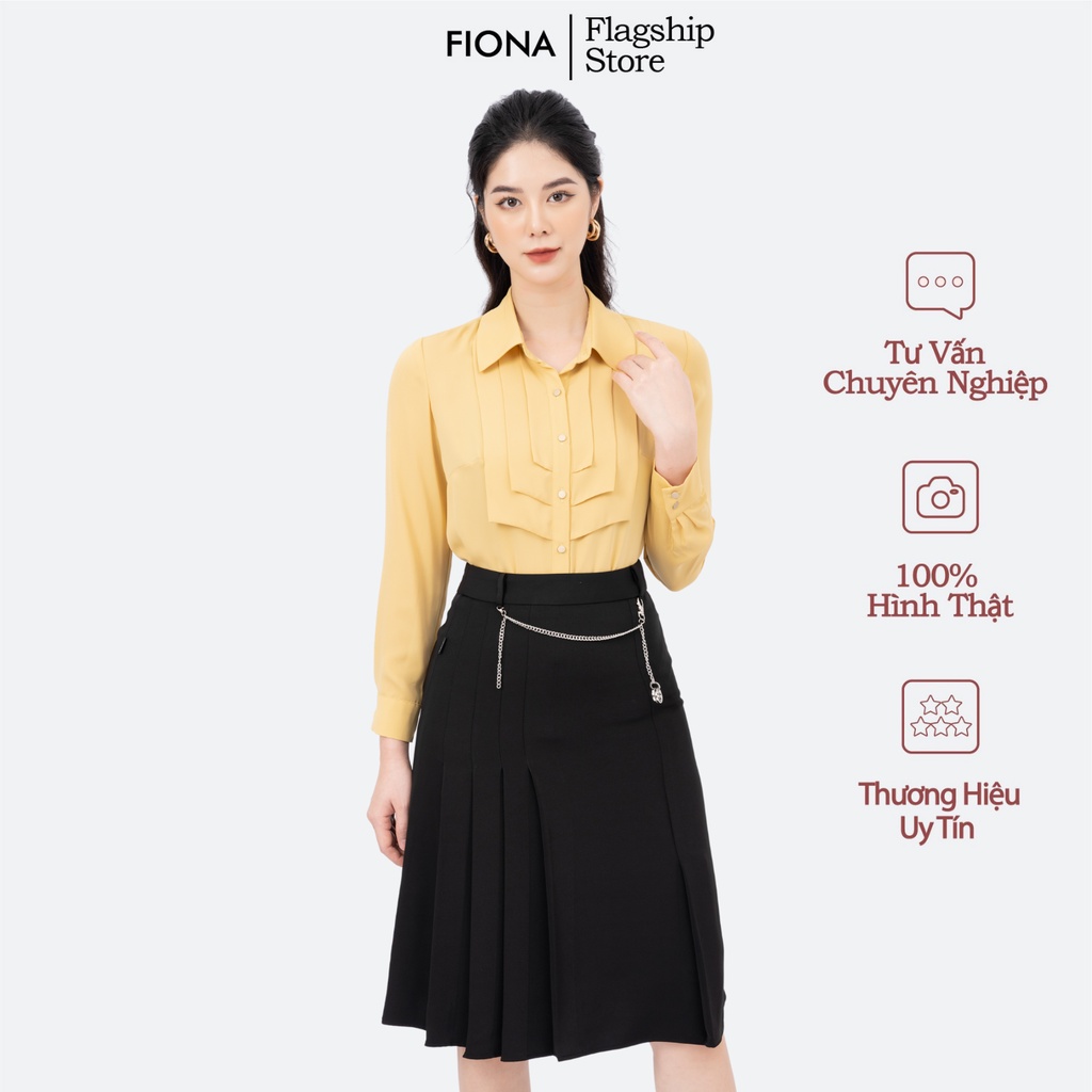 Giới thiệu Chân váy nữ dáng suông, chân váy công sở xếp ly, thiết kế thân trước kèm dây xích trang trí FIONA F251702