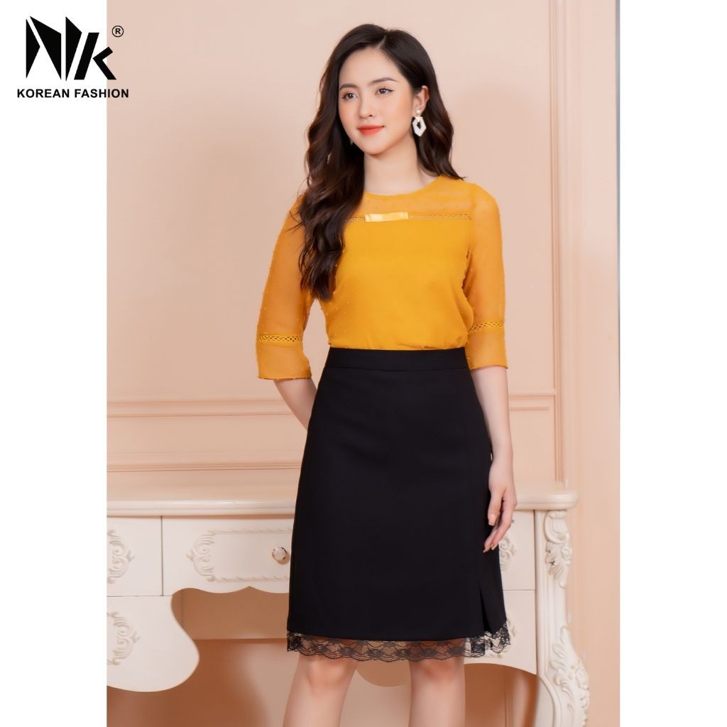Chân Váy Thiết Kế Công Sở NK FASHION Dáng Chữ A Gấu Váy Phối Ren, Chất Liệu Nhập Hàn Cao Cấp