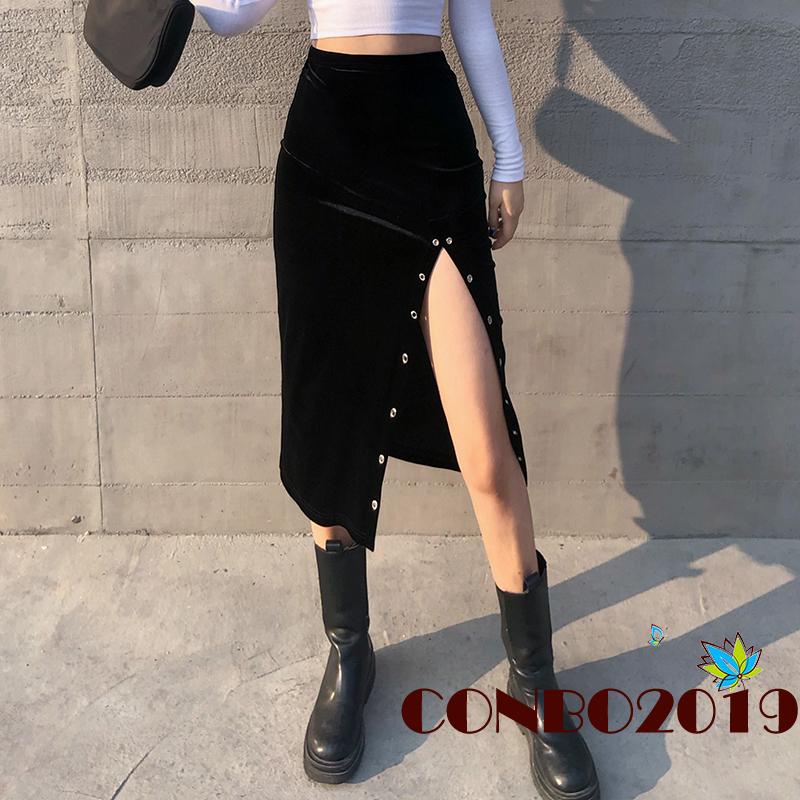 Giới thiệu Chân Váy Xẻ Tà Lưng Cao Màu Trơn Thời Trang Thu Đông Cho Nữ