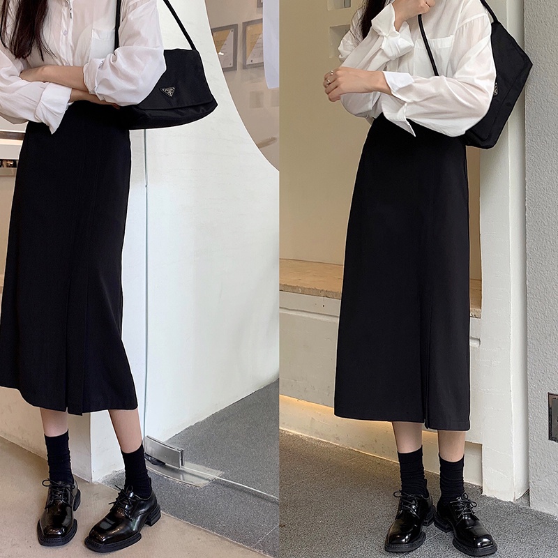 Giới thiệu Chân váy xếp li dài lưng cao hàn quốc có khóa kéo sau, li lệch 68cm