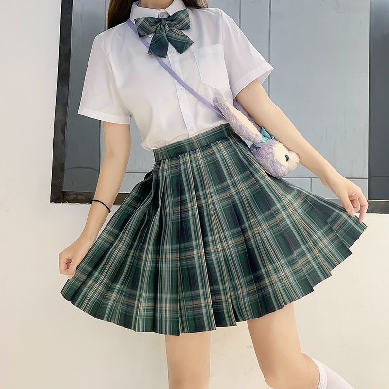 Giới thiệu Chân váy xếp ly họa tiết caro lưng cao phong cách Nhật bản cho nữ