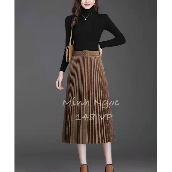 Giới thiệu CHÂN VÁY XẾP LY NHUNG VÂN Ô VUÔNG KÈM ĐAI -hàng Quảng Châu