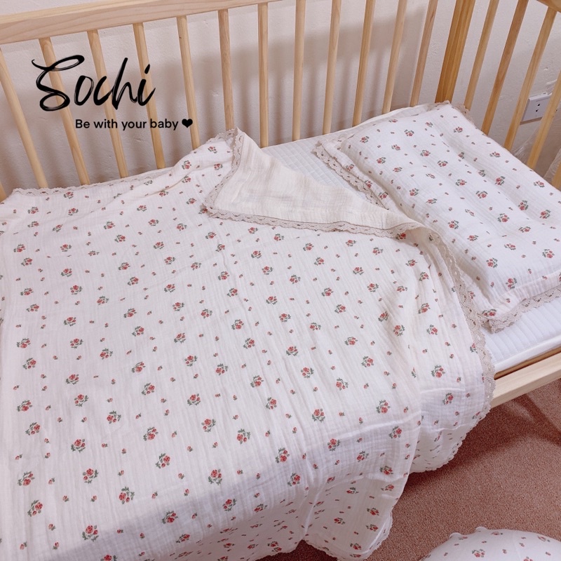 Giới thiệu Chăn xô muslin có kèm ruột bông đắp 4 mùa họa tiết đáng yêu cho bé