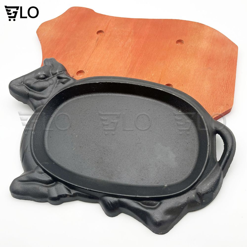 Chảo Gang Lớn Chống Dính Kèm đế gỗ Làm Bò Bít Tết Trứng Ốp La