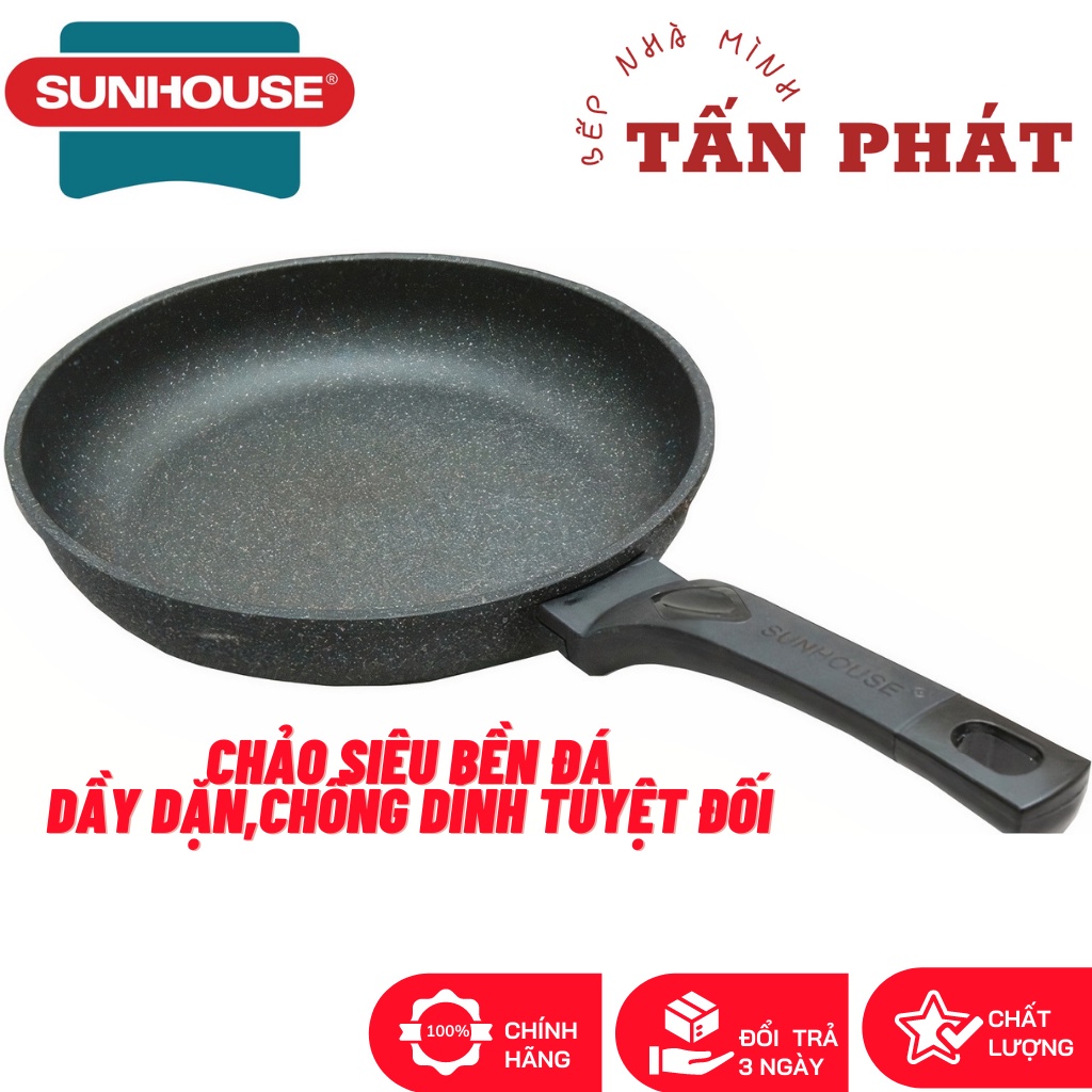 Giới thiệu Chảo siêu bên đá Sunhouse size 18-30cm (Không dùng trên bếp từ)