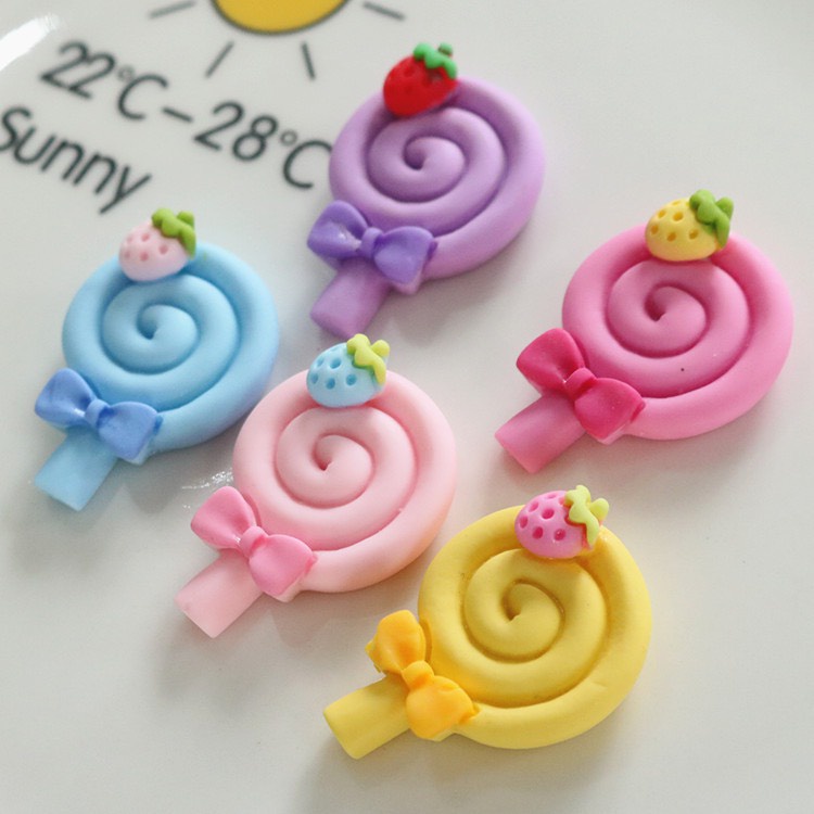 Giới thiệu Charm (C661) slime/ Dụng Cụ Charm Trang Trí [Ko Keo & Nút] Que Kẹo Trái Dâu Màu Pastel