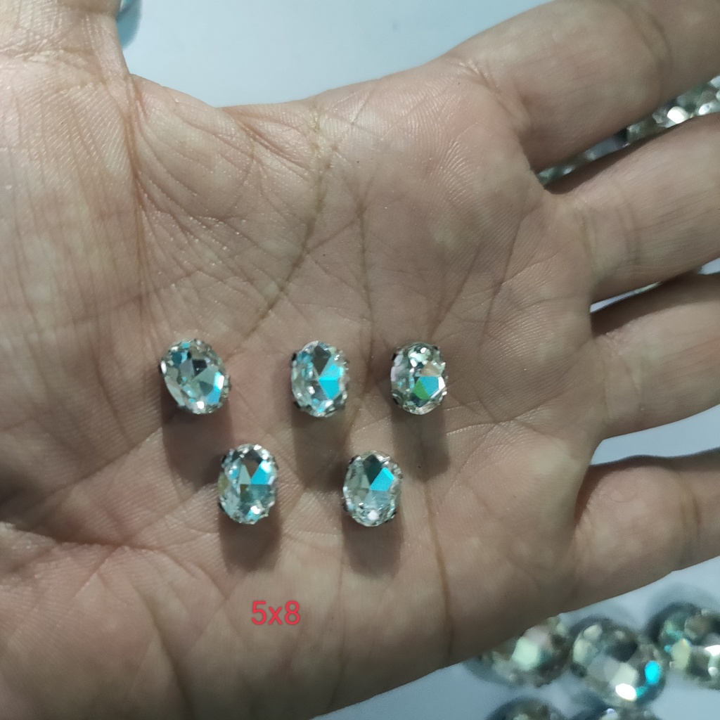 Đá chấu hình oval đủ size màu trắng làm phụ kiện thời trang, áo dài, handmadeGiá BCHB