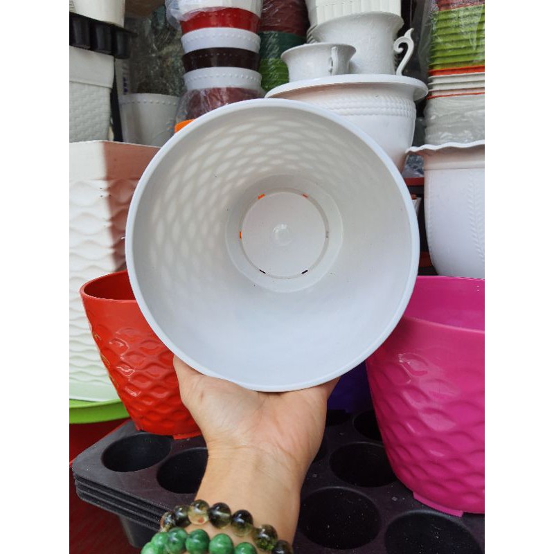 chậu nhựa nguyên chất cứng cáp, dày dặn. bề mặt chậu trơn bóng thuận tiện vệ sinh.