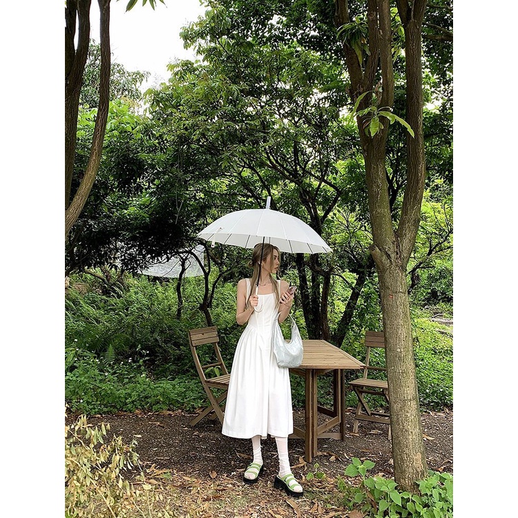 Giới thiệu Bán Chạy!F & X Đầm Dáng Dài Màu Trắng Phong Cách Hepburn Ôm Eo Hẹp Lá Kiểu Pháp Sang Trọng Cho Nữ