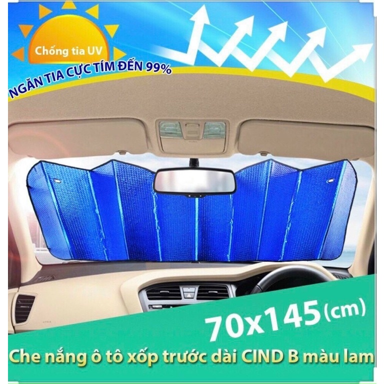 📌 THIẾT KẾ - Sản phẩm gồm 3 lớp dày dặn: - Bề mặt là chất liệu vải bạt tráng nhôm, phản quang chắn nắng cực tốt, chống thấm nước - Ở giữa là lớp bông cũng có tác dụng cản nhiệt - Trong cùng là vải nỉ đen mềm chống trầy xước phần kính lái ô tô - Kích thước 140*70cm, phù hợp với tất cả các dòng xe SUV, Sedan, Hatchback