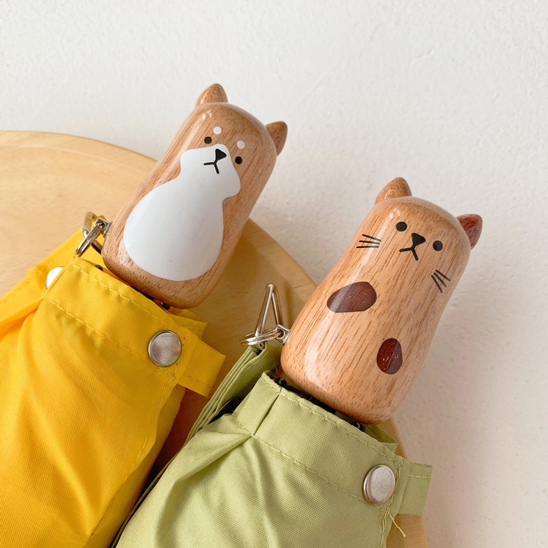 Giới thiệu Dù Che Mưa Nắng Chống Tia UV Tay Cầm Gỗ In Hình Chó Shiba Dễ Thương