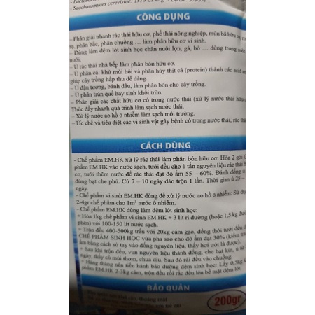 Chế phẩm EM HK là dòng chế phẩm vi sinh hữu hiệu, đa dụng và có nhiều chức năng. Một số công dụng cơ bản có thể kể đến của chế phẩm sinh học EM HK như: