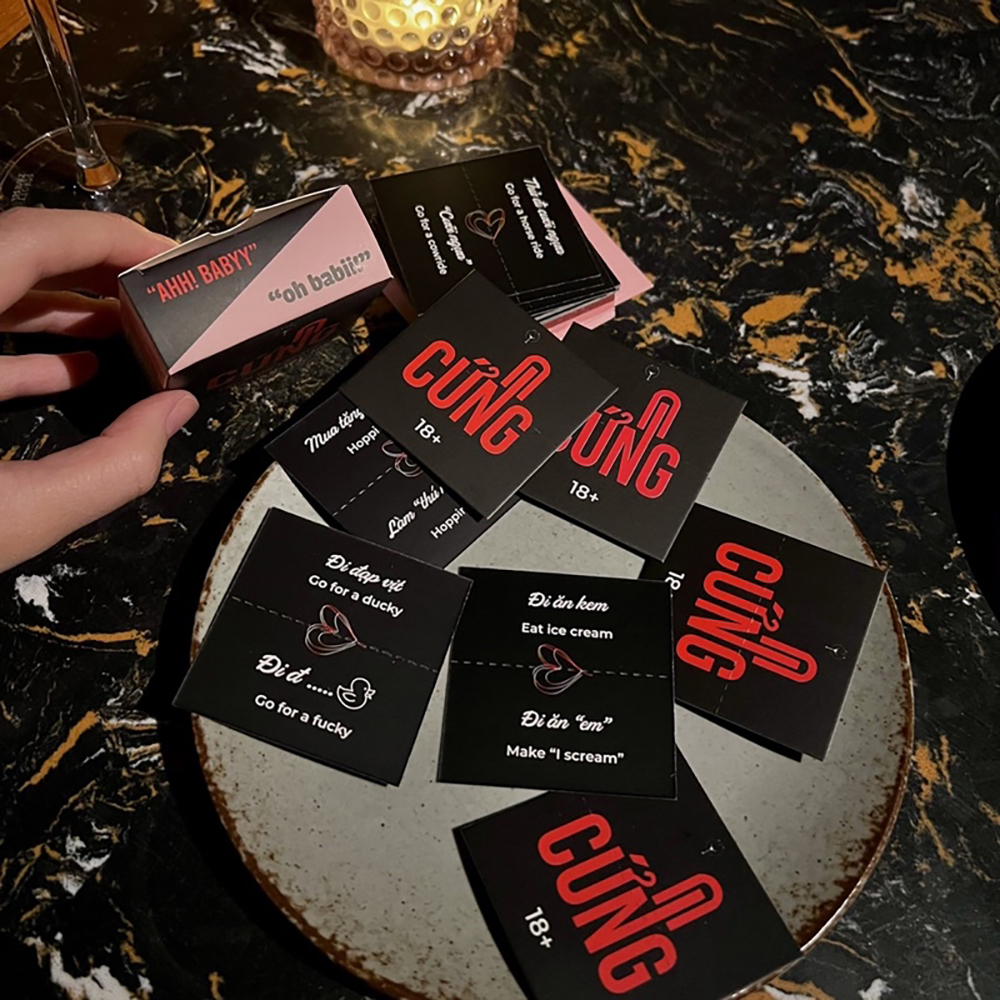 Cưng hay Cứng gồm 2 chủ đề: trong sáng và trong tối. Mỗi thẻ của từng chủ đề sẽ có 2 lựa chọn, để cặp đôi chúng mình chọn lựa chiều chuộng nhau một cách khách quan nhất. Với Cưng thì đầy tình cảm, nghịch ngợm để làm mới cuộc tì.nh của hai bạn. Còn với cách chơi chữ đảo vần đầy hừng hực, lại hài hước của Cứng chắc chắn sẽ đốt cháy “cuộc y.êu” đầy nóng bỏng của bạn, gia tăng thêm “vốn từ 18+” cho bạn đó. Đặc biệt bạn có thể tách set mua nếu còn đang ngại ngùng để chơi phần “Cứng”, còn muốn cháy lên nào thì quất cả hai nhé!