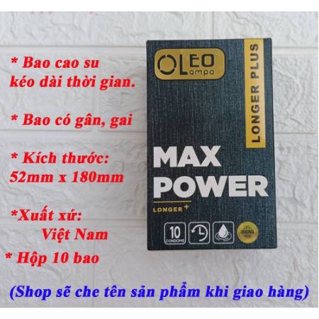 Sức Khỏe > Hỗ trợ tình dục > Bao cao su > [Che tên sp] Bao Cao Su gân Gai Bi Kéo Dài Thời Gian – Delay Benzocaine 7% OLeo Max Power 10 Cái Cao Cấp 10 Cái