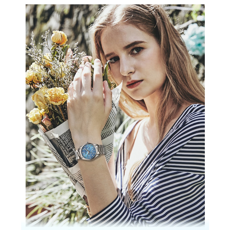Kích thước phụ nữ ' Chiều dài dây đeo — 22cm Chiều rộng dây đeo ' 1,6cm Độ dày dây đeo – 0,3cm Đường kính vỏ x 2,85cm Độ dày vỏ – 1,0cm Trọng lượng ' 64g Tình trạng “ Mới với nhãn Độ sâu chống thấm nước ≤ 3bar Loại khóa ' khóa vòng tay Tính năng chống thấm nước Tính năng kháng thuốc