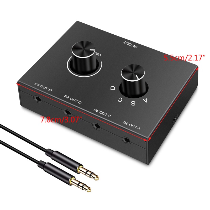 Bộ khuếch đại bộ chia 3,5 mm cho điện thoại máy tính xách tay Pc Các tính năng: Thương hiệu mới và chất lượng cao Nhiều nút chức năng: Chuyển đổi nguồn đầu vào bằng cách nhấn nút trên bộ chuyển đổi để tránh cắm và rút tuần tự. Cũng có Nút Công tắc Điều khiển Âm lượng và kênh, Thuận tiện khi sử dụng. Chất liệu cao cấp: Được làm bằng kim loại chất lượng cao, ổn định, chắc chắn và bền. Kích thước nhẹ: Kích thước di động và nhỏ, dễ dàng cất giữ và mang theo, mang lại sự tiện lợi cho bạn. Việc sử dụng rất đơn giản: Kết nối 4 âm thanh với (đầu vào / đầu ra) A / B / C / D, sử dụng núm chuyển đổi 4 kênh để lấy đầu ra. Ứng dụng: Hiệu suất tốt, thuận tiện và thiết thực, thích hợp cho gia đình và chuyên nghiệp.
