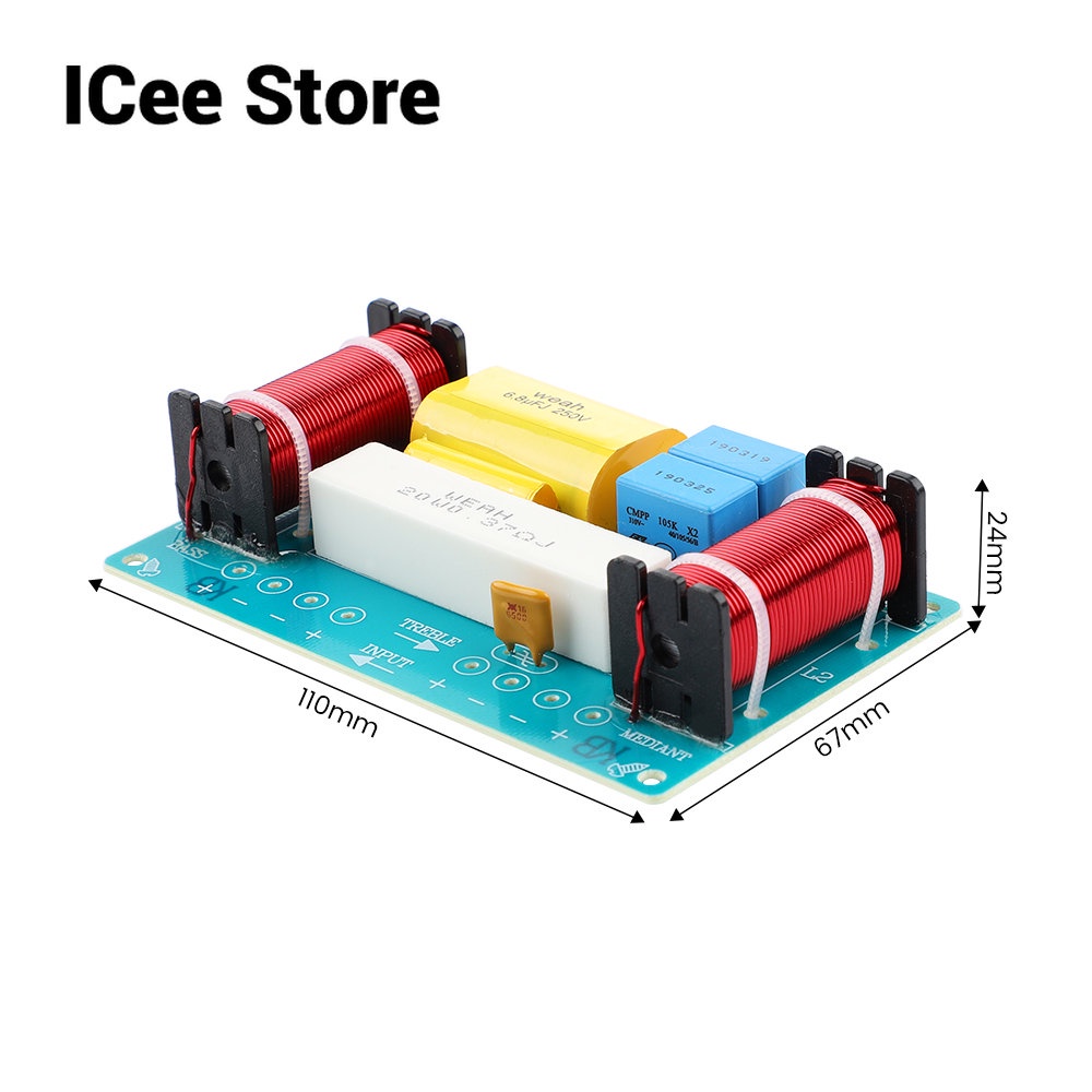 Mô tả ' Model: WEAH-338 (bộ chia 3 chiều treble-Mid-bass) Đáp ứng tần số: âm trầm: 45Hz treble: 20KHz Điểm chéo: 980Hz, 5000Hz Công suất: Tối đa 120W Trở kháng: 4-8 Ohm Thích hợp cho loa dưới 8 Inch Kích thước: 110 * 67 * 24mm Lắp đặt Lỗ chéo: 11,8cm, Góc liền kề: 10,3cm và 6,0cm