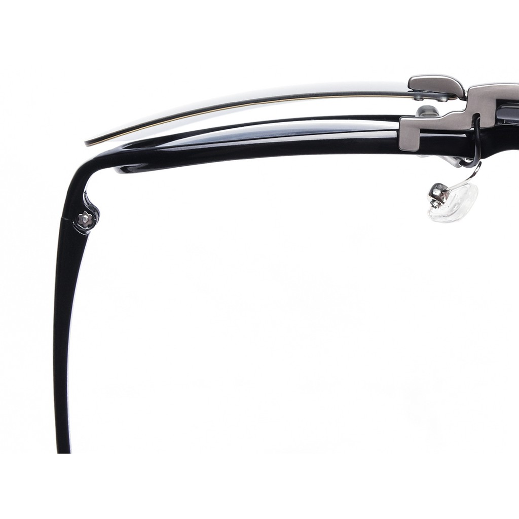 Liên kết giữ 2 mắt kính là phần khớp nối, được làm từ hợp kim kẽm. Thay cho hợp kim nhôm và thép không gỉ, hợp kim kẽm sẽ cho độ bền cao hơn, nhẹ hơn cũng như mang đến độ dẽo dai cần thiết. Đây cũng là nơi bố trí của cơ cấu kẹp kính, bộ phận giúp cố định mắt kính SM009 lên chiếc kính chính mà bạn đang đeo.