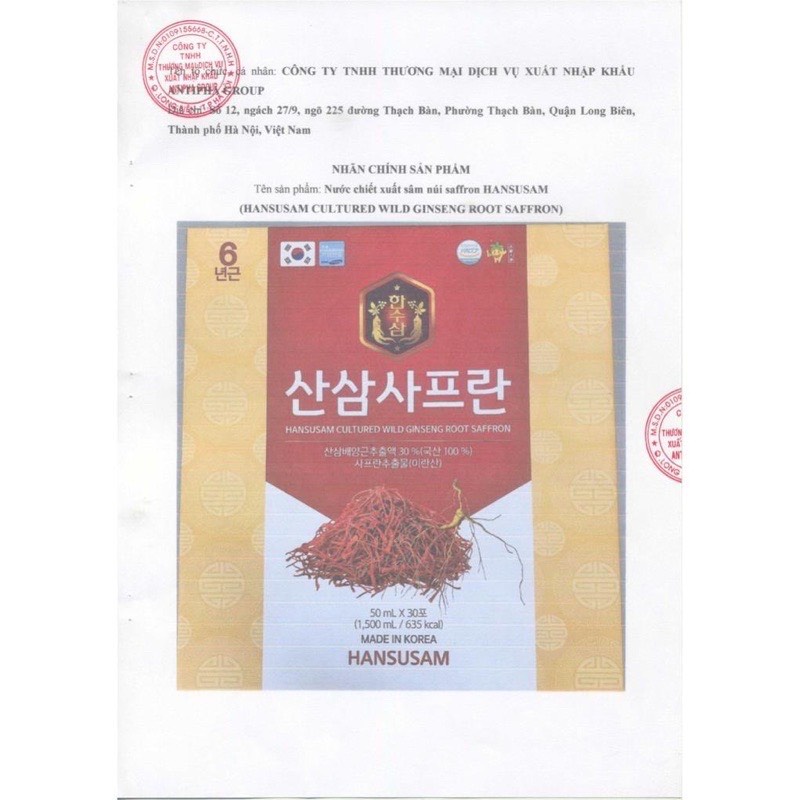 Giới thiệu Nước Chiết Xuất Hồng Sâm Núi và Nhụy Nghệ Tây Saffon Hansusam 50ml x 30 gói