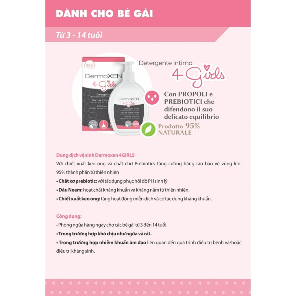 Giới thiệu [CHÍNH HÃNG] DUNG DỊCH VỆ SINH BÉ GÁI DERMOXEN 4 GIRL TỪ NƯỚC Ý