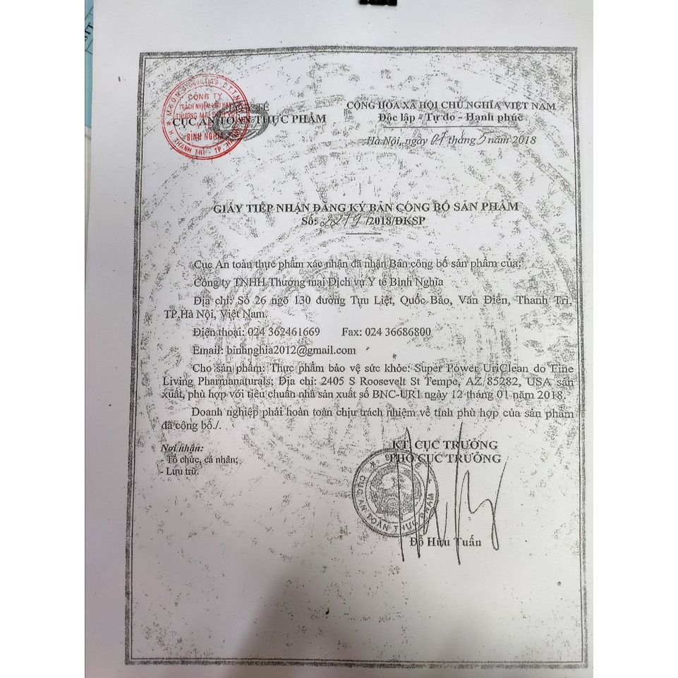 5. Giấy phép của Super Power UriClean ♦ Xuất xứ: Mỹ