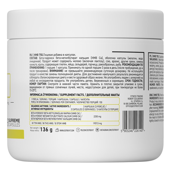 - OstroVit Supreme Capsules HMB 750 là chế phẩm hiện đại, chất lượng cao nhất. Viên nang tối cao OstroVit HMB 750 - Beta-Hydroxy Beta-Methyl butyrate
