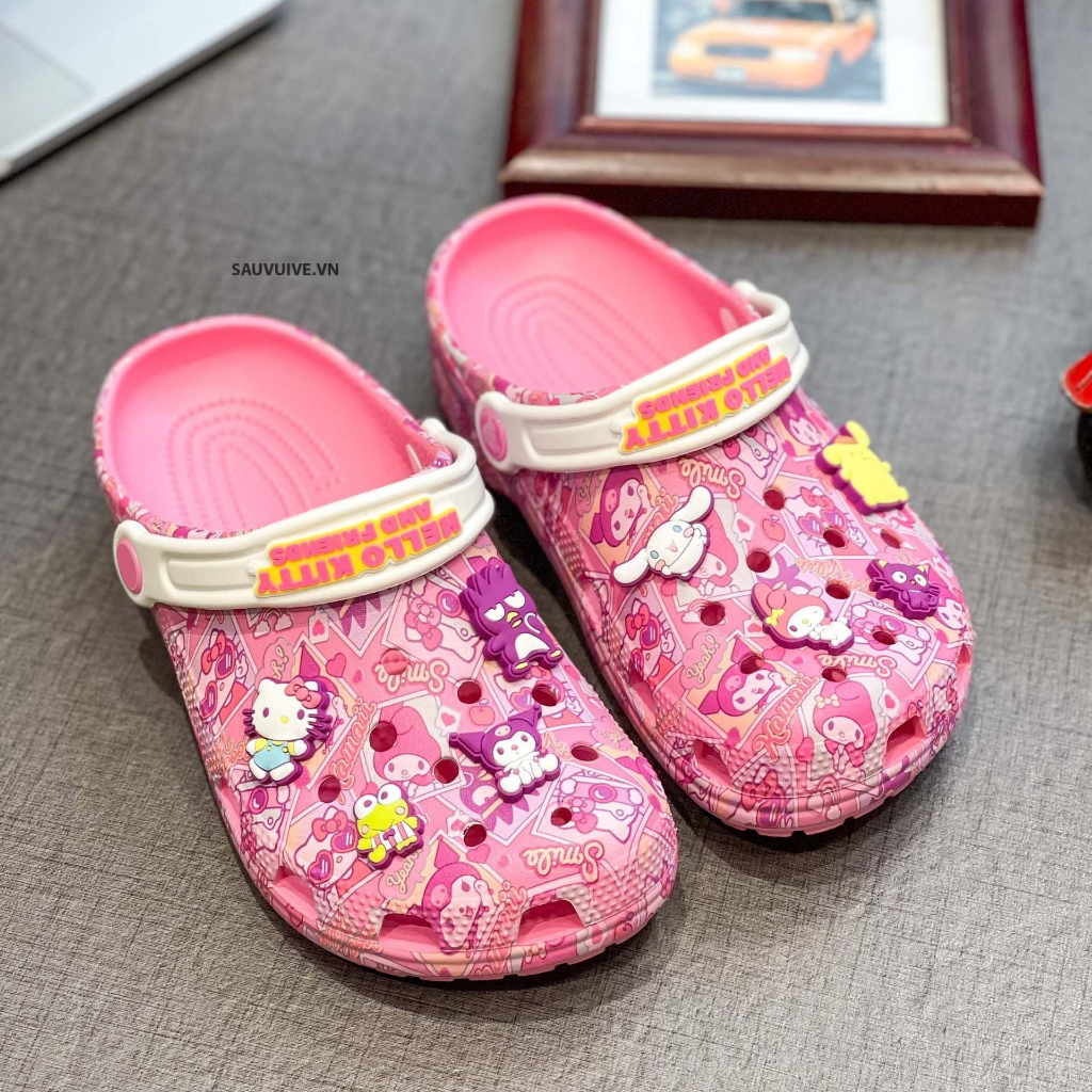 Giới thiệu CHK-Crocs Hello Kitty And Friends Classic Clog Kid Size 24-35-Tặng Jibbizt Như Hình-Sấu Vui Vẻ