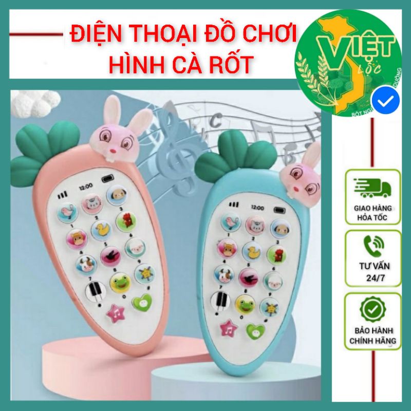 Đồ chơi cho bé, điện thoại hình cà rốt, có nhạc, tiếng động vật, các âm thanh, kèm dây đeo và pin theo máy
