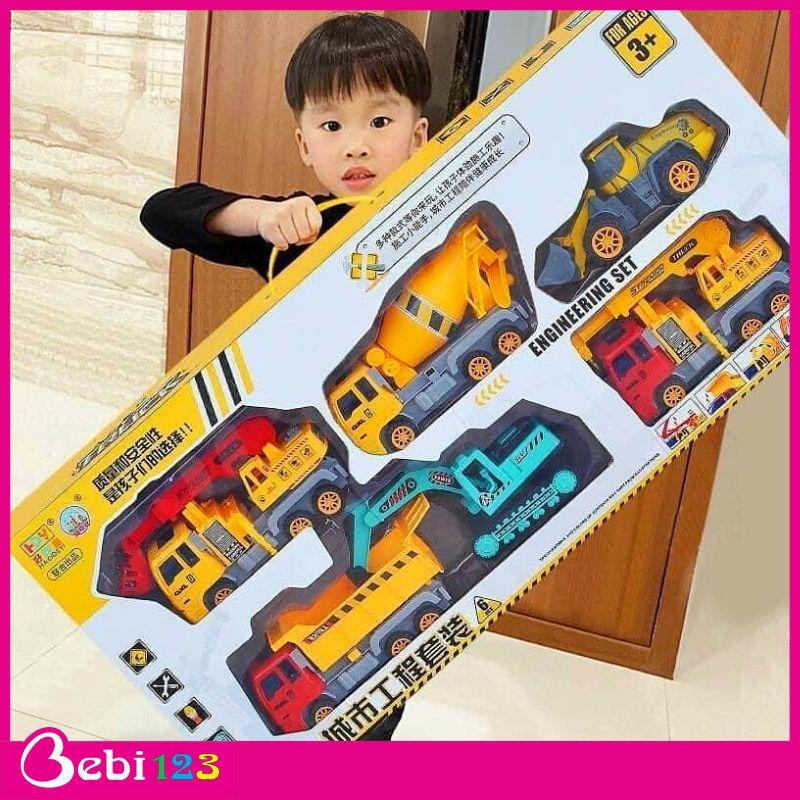 Giới thiệu Bộ đồ chơi 6 Xe Công Trình Cở Lớn, Xe Bánh Đà size To cho bé