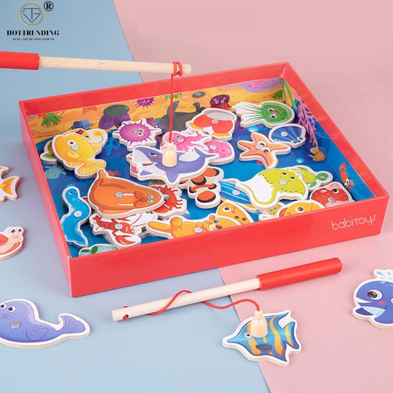 Bộ Đồ Chơi Câu Cá 34 Sinh Vật Biển Bằng Gỗ Tự Nhiên An Toàn Nam Châm Cho 2 Bé Chơi Phát Triển Trí Tuệ