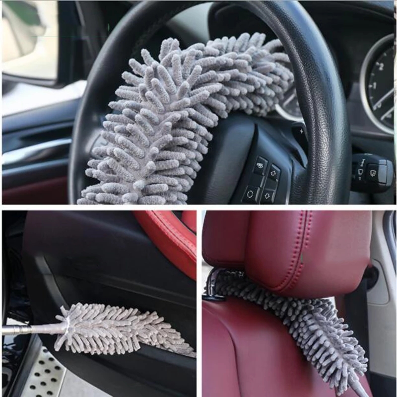 description Chenille dust duster. High-quality stainless steel telescopic rod, durable and non-rusting, non-slip grip, artificial mechanics design, comfortable grip. It can be scaled arbitrarily to meet daily household needs. The head can be bent and it can be cleaned easily. Thick chenille fabric is durable and easy to clean.
