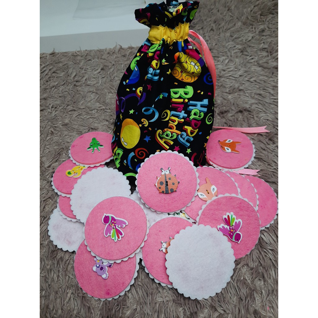 Kích thước: - Vải nỉ dày 0.5cm - Đường kính 7.5cm Bộ tìm cặp được TEDU may thủ công từng chi tiết, kể cả miếng dán. Mỗi set có 20 miếng may kèm con vật khác nhau và giống nhau để bé kích thích sự sáng tạo kèm khả năng nhạy bén ghi nhớ vị trí khác nhau, màu sắc bắt mắt. Bé có thể học: - nhận diện màu sắc - nhận diện con vật - nhận diện cặp giống nhau - Vải nỉ may 2 lớp cứng cáp và chắc chắn - Xuất xứ : Tedu Việt Nam
