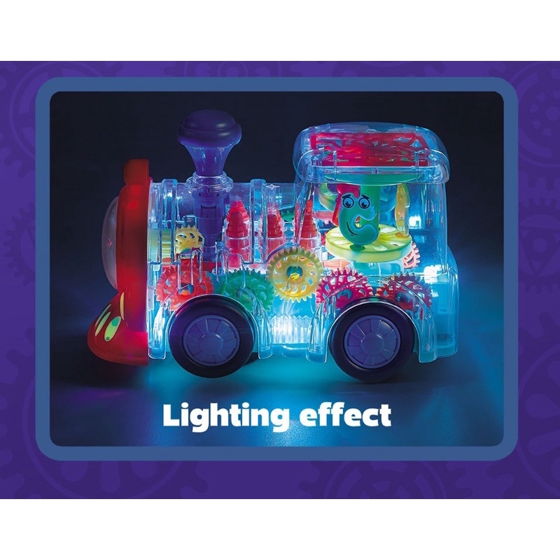 - Gồm 01 xe lửa: bên trong có bộ số quay tròn 360 độ, các thiết bị bên trong (bánh xe, đầu tầu, ống khói...) đều cử động được - Xe sử dụng pin chạy tự động, phát đèn, phát nhạc, gặp chướng ngại vật biết quay đầu làm bé thích thú - Dành cho bé từ 1 tuổi trở lên