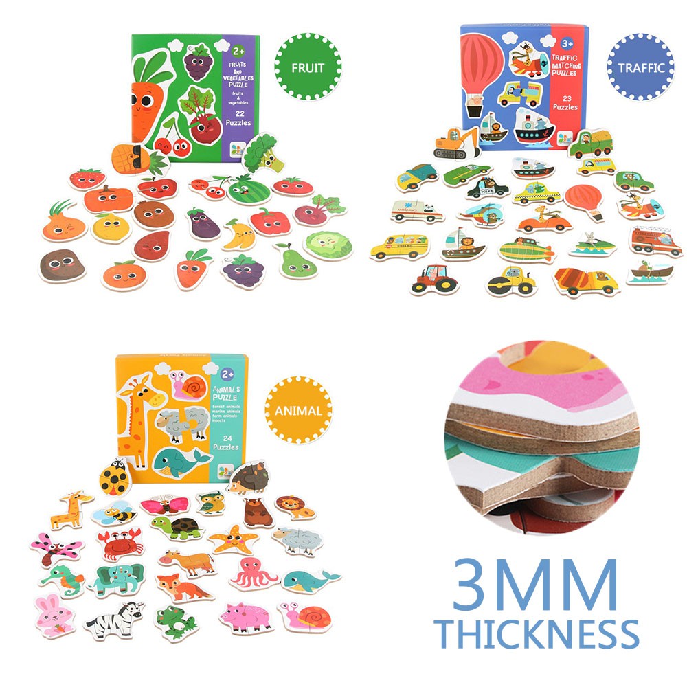 Giới thiệu Bộ Đồ Chơi Xếp Hình Động Vật / Trái Cây / Xe Hơi Bằng Gỗ Độc Đáo Tiện Dụng Cho Bé