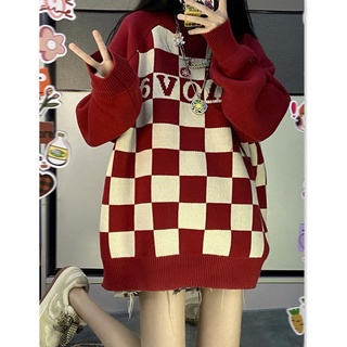 Áo Sweater Dệt Kim Chui Đầu Dáng Rộng In Chữ Cờ Vua Thời Trang Cho Học Sinh Nữ