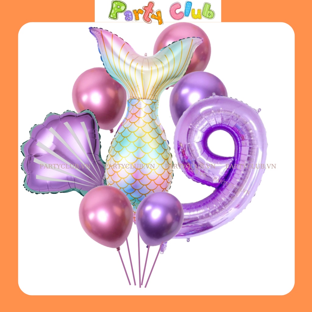 Thông tin sản phẩm chùm bóng nàng tiên cá trang trí sinh nhật bao gồm : Chùm nàng tiên cá gồm : 3 bóng xanh, 2 bóng tím,1 bóng vỏ sò, 1 bóng tiên cá, 1 bóng số tuổi size70 cm Chùm bóng đuôi cá gồm : 3 bóng hồng,2 bóng tím, 1 bóng vỏ sò, 1 bóng đuôi cá, 1 bóng số tuổi size 70cm ► Bóng hoa tiên cá, vỏ sò và bóng số tuổi là bóng lá nhôm, khóa van 1 chiều, Khách chỉ cần bơm căng lên vừa phải rồi rút bơm ra. Hơi sẽ tự động khóa lại. Không cần dùng dây buộc, bóng bơm căng có thể để đc 2-3 tháng hoặc lâu hơn. Có thể tái sử dụng nhiều lần (Khi dùng xong bạn chỉ cần lấy 1 ống hút nhỏ cho vào đầu bơm rồi từ từ xì hết hơi ra. Cất đi lần sau sử dụng như mới)