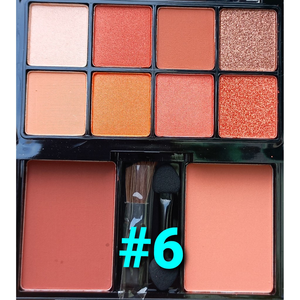 Thiết kế 2 tầng vô cùng tiện lợi luôn. Tầng màu mắt ở trên với 8 ô màu dễ dàng mix nhiều kiểu trang điểm bất chấp xuân hạ thu đông nha, tầng dưới là 2 ô phấn má hồng với một ô má hồng cam đất và một ô phấn má màu hồng.