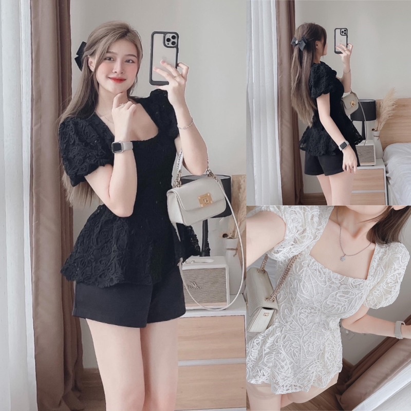 Thời Trang Nữ > Bộ > Đồ lẻ > [ CHUBBY BIGISZE ] SET ÁO REN CỔ VUÔNG TAY BỒNG BIGISZE TỪ 50-100kg