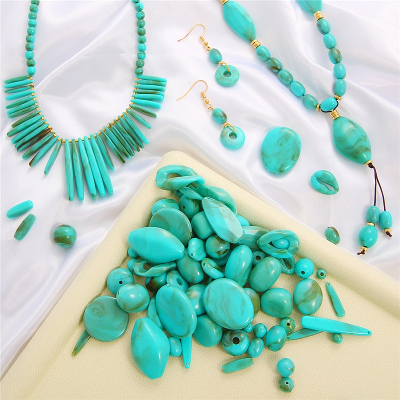 Phụ Kiện & Trang Sức Nữ > Phụ kiện thêm > Mặt dây chuyền và Charm > Chuỗi hạt BEADIA bằng nhựa acrylic màu ngọc lam hình bầu dục dùng làm trang sức chuyên dụng