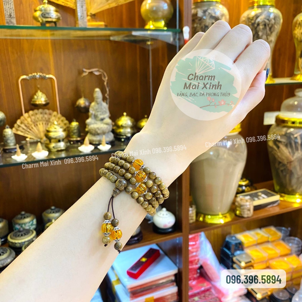 Giới thiệu Chuỗi Trầm Hương Tốc 108 hạt 6mm + charm Đá Ngũ Bảo Tây Tạng khắc chú chữ Phạn Omani - Vòng Tay Gỗ tự nhiên Nam Nữ
