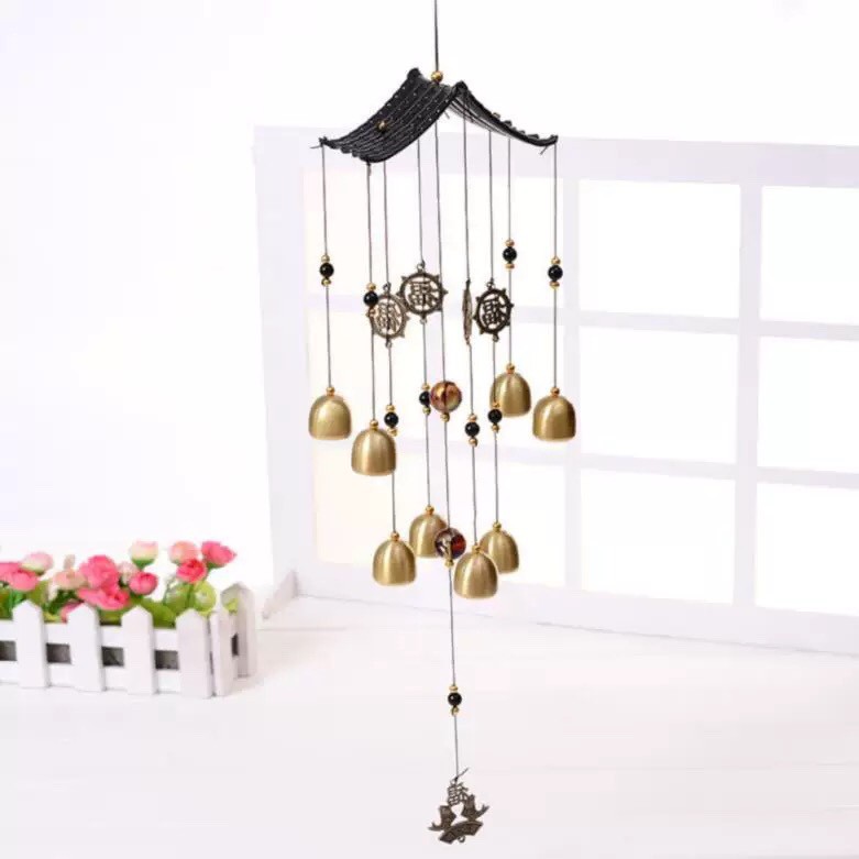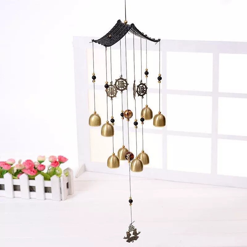 Chuông gió tiếng kêu vui tai. Giải tỏa bức bối, xua đuổi tà ma. Hóa sát, đem lại bình an. Khi có gió thôi chuông gió sẽ phát ra âm thanh khuấy động các luông khí, kéo cát khí đến hóa giải sát khí Chất liệu: chuông gió với quả chuông làm bằng đồng, mái nhà làm từ nhựa PC Kích thước: chiều dài chuông 67cmChuông gió tiếng kêu vui tai. Giải tỏa bức bối, xua đuổi tà ma. Hóa sát, đem lại bình an. Khi có gió thôi chuông gió sẽ phát ra âm thanh khuấy động các luông khí, kéo cát khí đến hóa giải sát khí