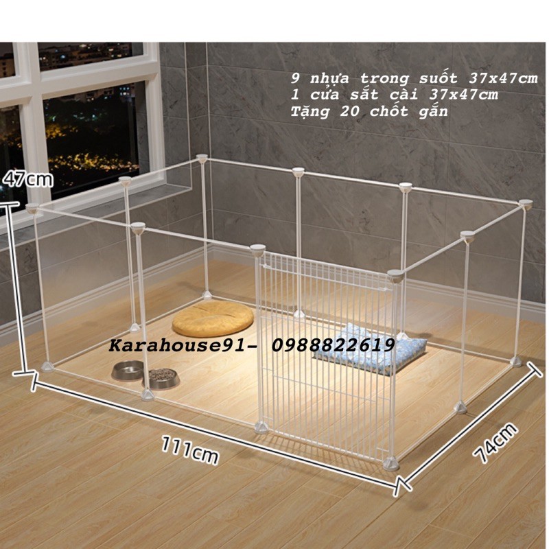 CHUỒNG QUÂY CHÓ MÈO SIZE 37x 47cm.9 tấm nhựa trong 35x45cm và 1 cửa sắt cài 35x45cm. tặng kèm 20 chốt gắn