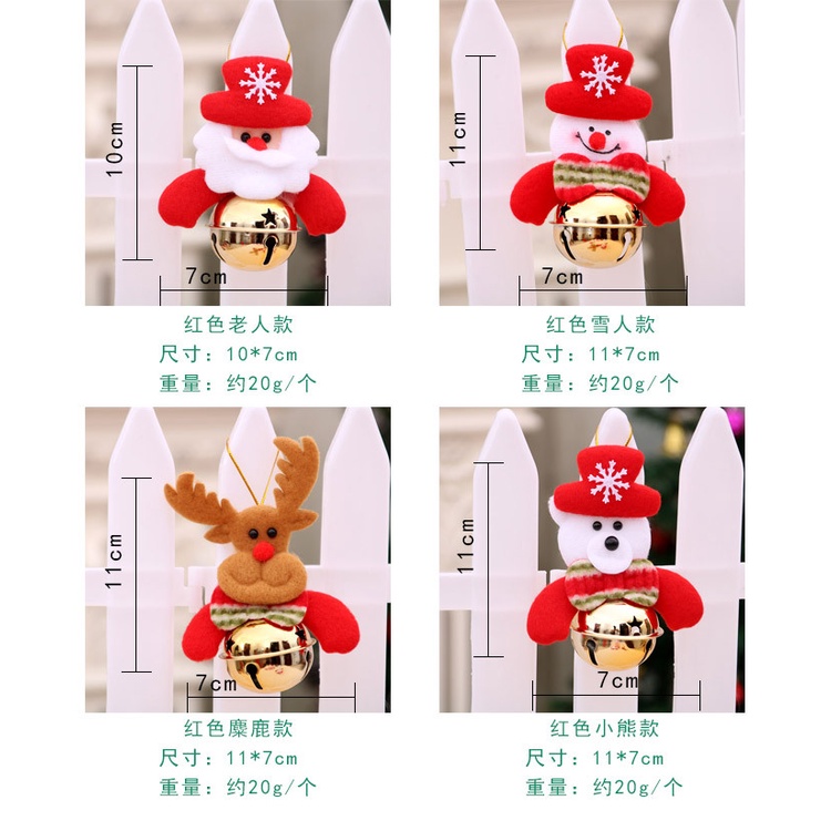 1.Chất liệu: vải không dệt, tạ 2.Màu sắc: Như được hiển thị 3.Phong cách: 8 loại phong cách để lựa chọn. 4.Kích thước treo: 11 * 7 cm 5.Đường kính chuông: khoảng 5 cm 6.Gói bao gồm: 1 * Chuông treo Giáng sinh